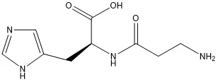 肌肽學名β-丙氨酰-L-組氨酸(見圖6),是一種由β-丙氨酸和L-組氨酸兩種氨基酸組成的二肽,結晶狀固體。肌肉和腦部的組織中濃度很高。