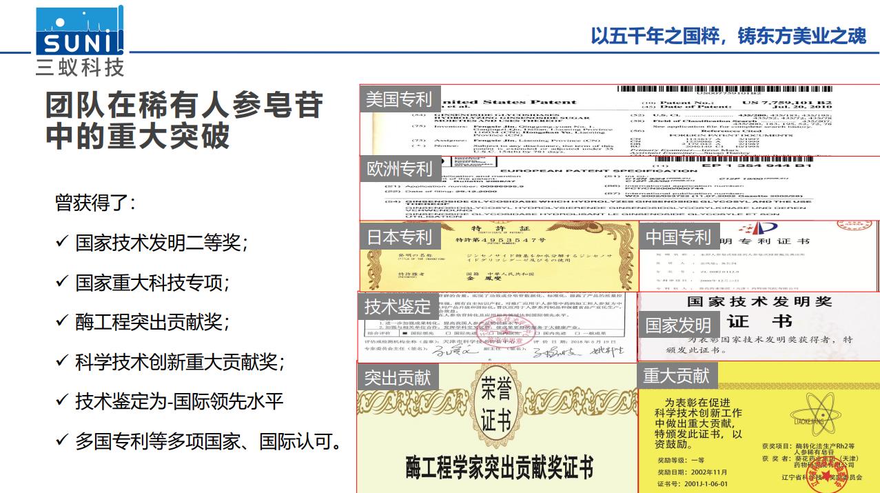 成果:原創(chuàng)四種人參皂苷酶,將野山參最優(yōu)秀的成分,放大生產(chǎn)出百萬倍人參精粹,細分靶向,解決敏感肌、脫發(fā)、濕癢、老化困擾。